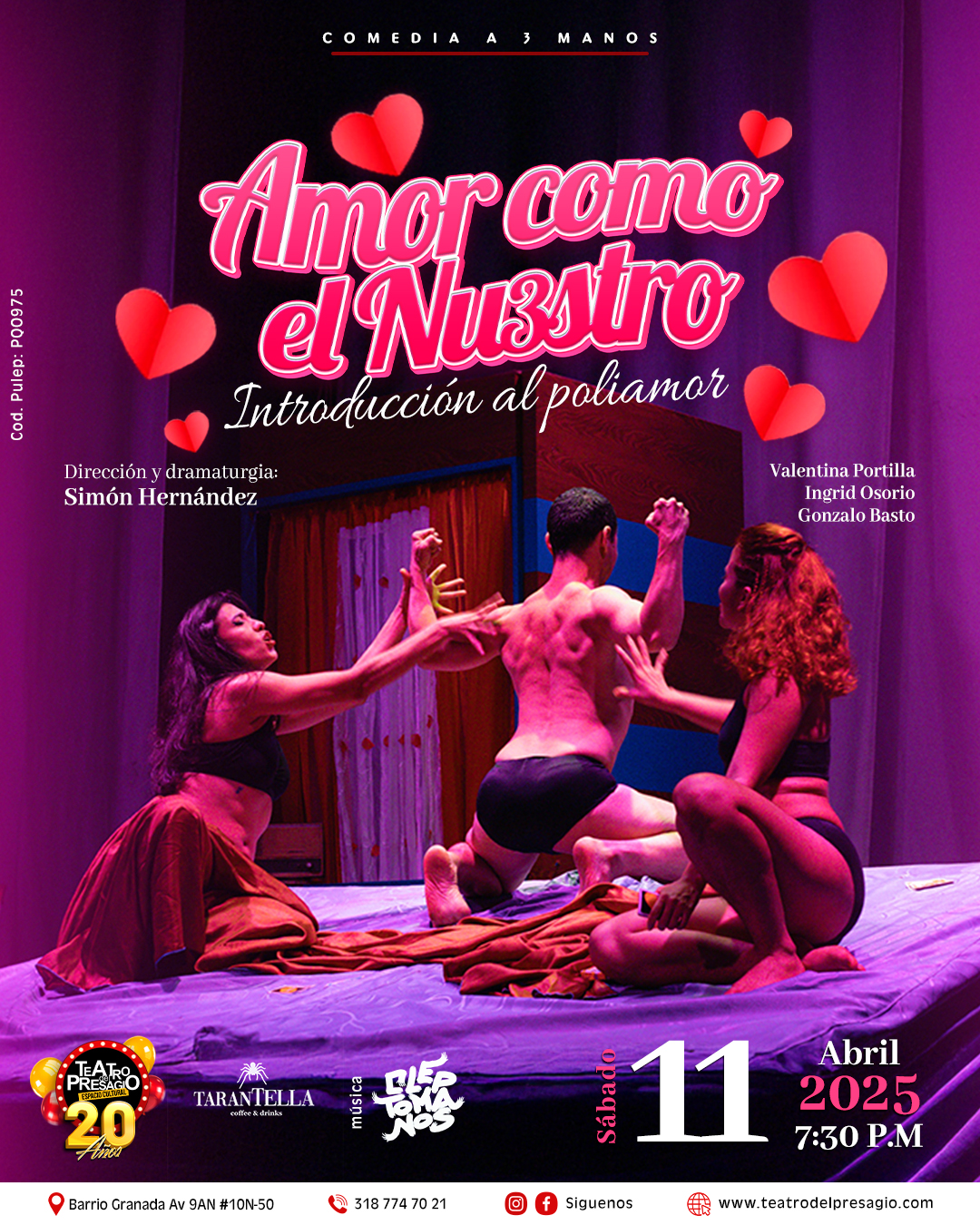 Lugar: TEATRO del PRESAGIO Av. 9A #10N-50, Granada, Cali