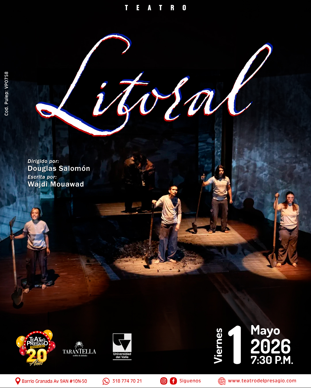 Integrado por estudiantes de octavo semestre de la Licenciatura en Arte Dramático, el grupo celebra el estreno de Litoral de Wajdi Mouawad, bajo la dirección de Douglas Salomón, afianzando así un proceso de creación artística que ha venido construyéndose a lo largo de su formación universitaria con las asignatura taller de puesta en escena I y II. En semestres previos desarrollaron un montaje corporal inspirado en una adaptación de Noches blancas de Fiódor Dostoyevski, con la dirección de Angélica Suárez, e hicieron su primer estreno con la obra Ivánov de Antón Chéjov, dirigida por Alejandro González Puche, obra que llevaron a distintos escenarios del Valle del Cauca, entre ellos Roldanillo y Guacarí.