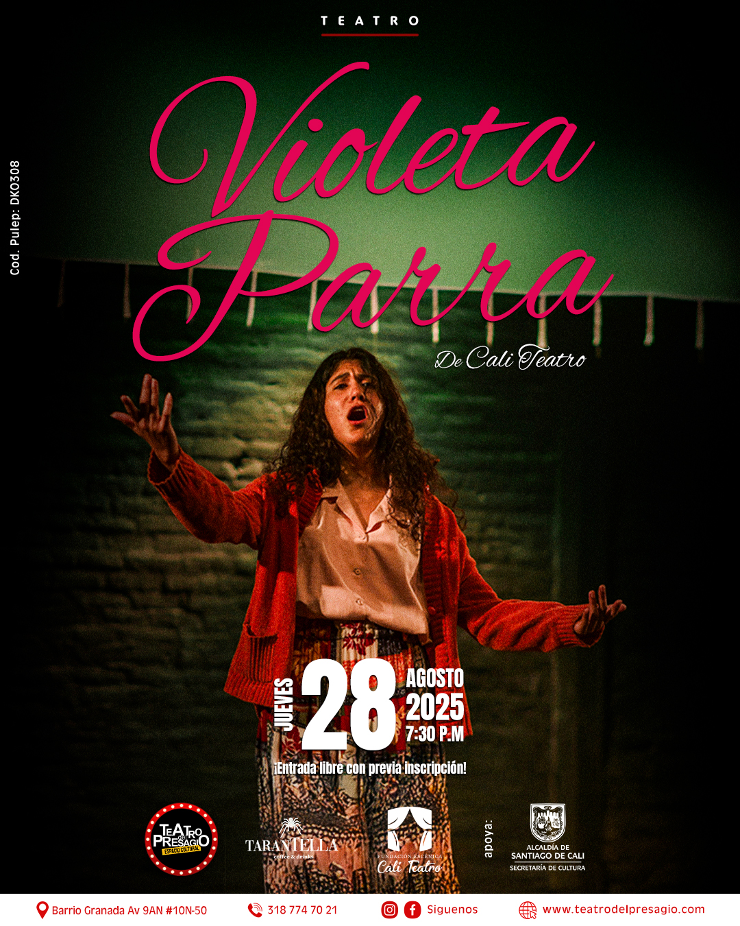 La campesina, la amante y defensora del folclor chileno, la investigadora, la poetisa, compositora, cantante, pintora de hermosos oleos y arpilleras, activista revolucionaria, madre de cuatro hijos, irreverente, apasionada, primera expositora latina en el Museo del Louvre, merecedora de importantes premios, cantante de radio y televisión y en destacados escenarios de Europa. Se suicida en su país natal en el año de 1967. En esta puesta escénica serás testigo de los acontecimientos más importantes de la vida de este personaje icónico chileno, sus momentos de profundo dolor, de exuberante felicidad y su decisión más trascendental.